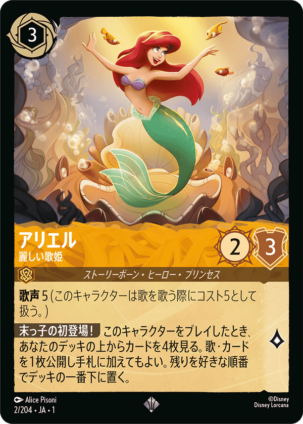 末っ子の初登場! このキャラクターをプレイしたとき、あなたのデッキの上からカードを4枚見る。歌・カードを1枚公開し手札に加えてもよい。残りを好きな順番でデッキの一番下に置く。