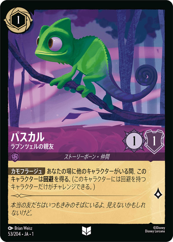 カモフラージュ あなたの場に他のキャラクターがいる間、このキャラクターは回避を得る。(このキャラクターには回避を持つキャラクターだけがチャレンジできる。)