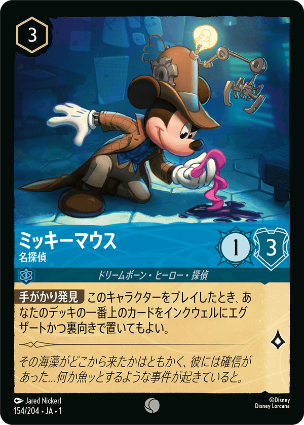 手がかり発見 このキャラクターをプレイしたとき、あなたのデッキの一番上のカードをインクウェルにエグザートかつ裏向きで置いてもよい。