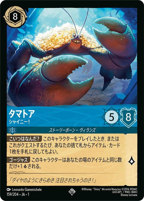 こいつはなんだ? このキャラクターをプレイしたとき、またはこれがクエストするたび、あなたの捨て札からアイテム・カード1枚を手札に戻してもよい。