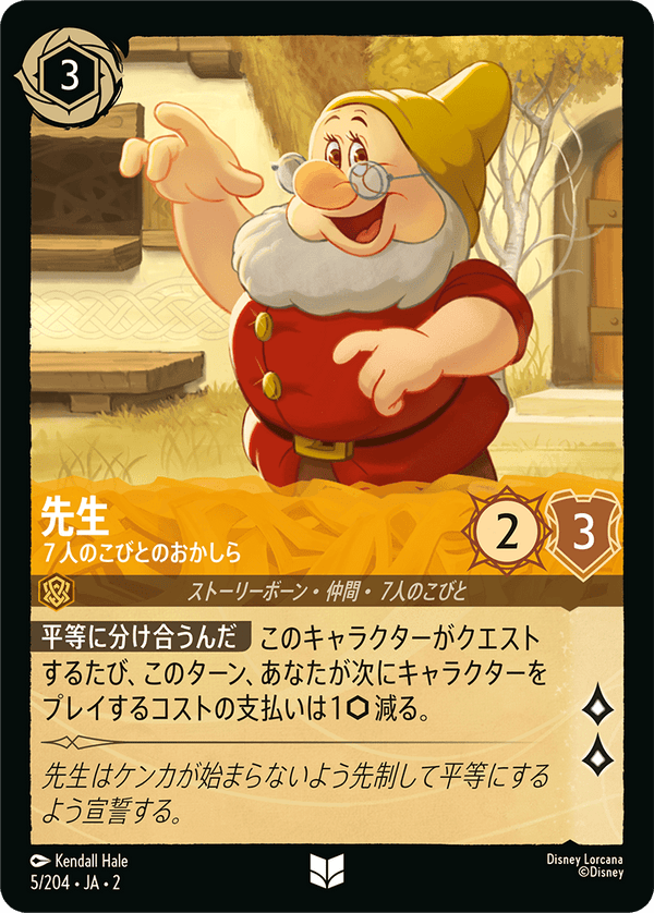 平等に分け合うんだ このキャラクターがクエストするたび、このターン、あなたが次にキャラクターをプレイするコストの支払いは1減る。