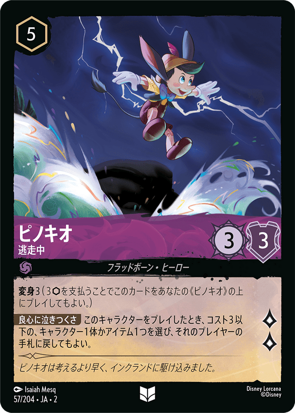 変身3(3を支払うことでこのカードをあなたの《ピノキオ》の上にプレイしてもよい。)