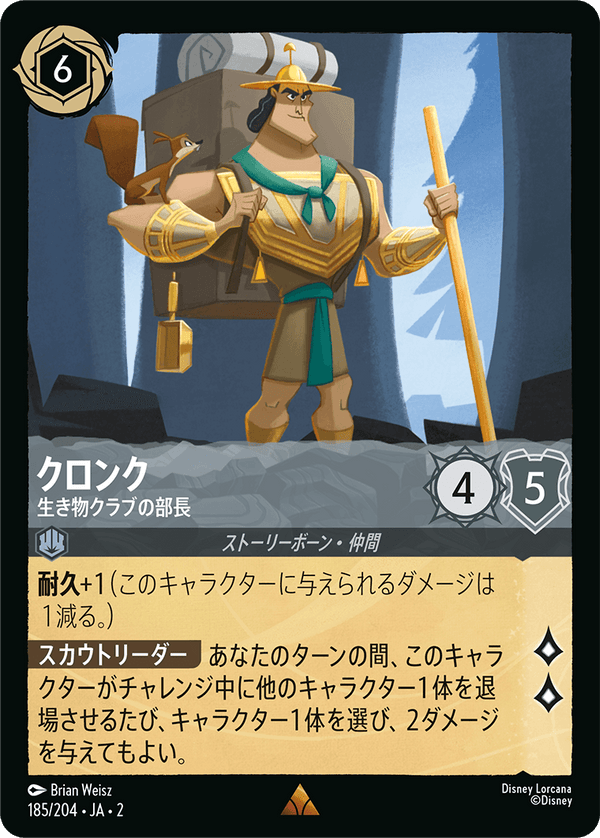 スカウトリーダー あなたのターンの間、このキャラクターがチャレンジ中に他のキャラクター1体を退場させるたび、キャラクター1体を選び、2ダメージを与えてもよい。