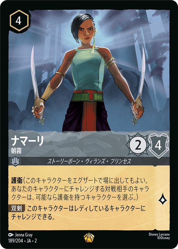 護衛(このキャラクターをエグザートで場に出してもよい。あなたのキャラクターにチャレンジする対戦相手のキャラクターは、可能なら護衛を持つキャラクターを選ぶ。)