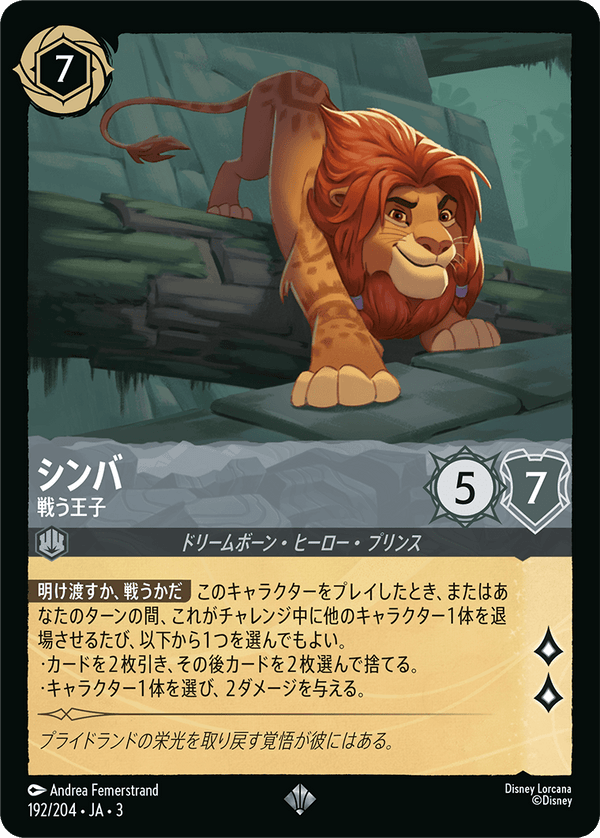 明け渡すか、戦うかだ このキャラクターをプレイしたとき、またはあなたのターンの間、これがチャレンジ中に他のキャラクター1体を退場させるたび、以下から1つを選んでもよい。
