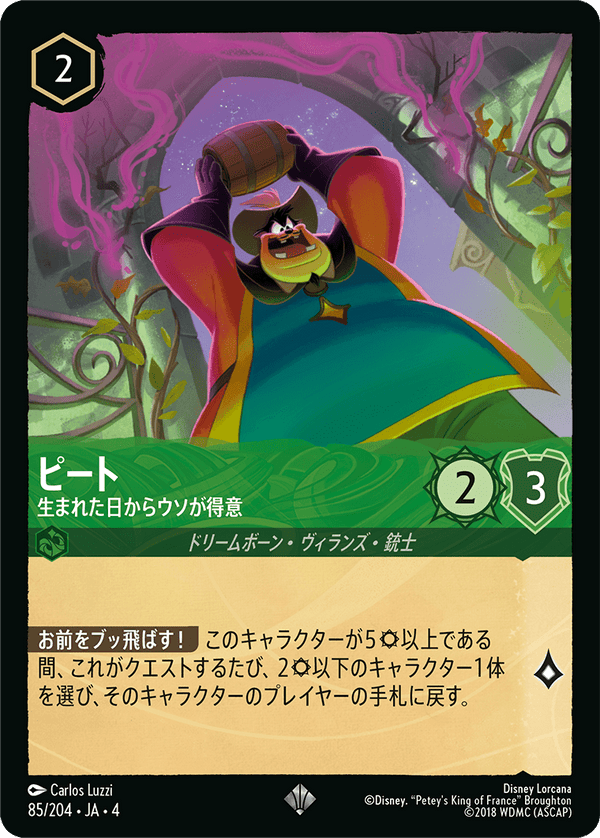 お前をブッ飛ばす! このキャラクターが5以上である間、これがクエストするたび、2以下のキャラクター1体を選び、そのキャラクターのプレイヤーの手札に戻す。