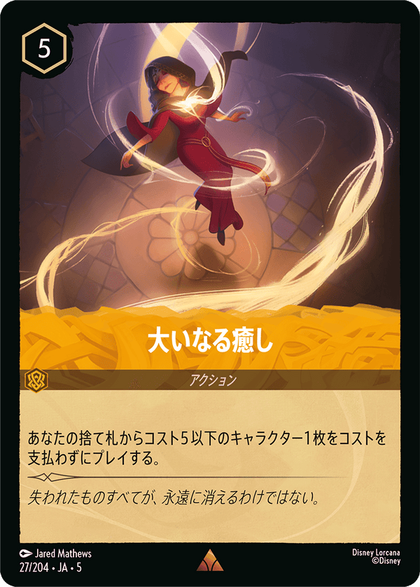 あなたの捨て札からコスト5以下のキャラクター1枚をコストを支払わずにプレイする。