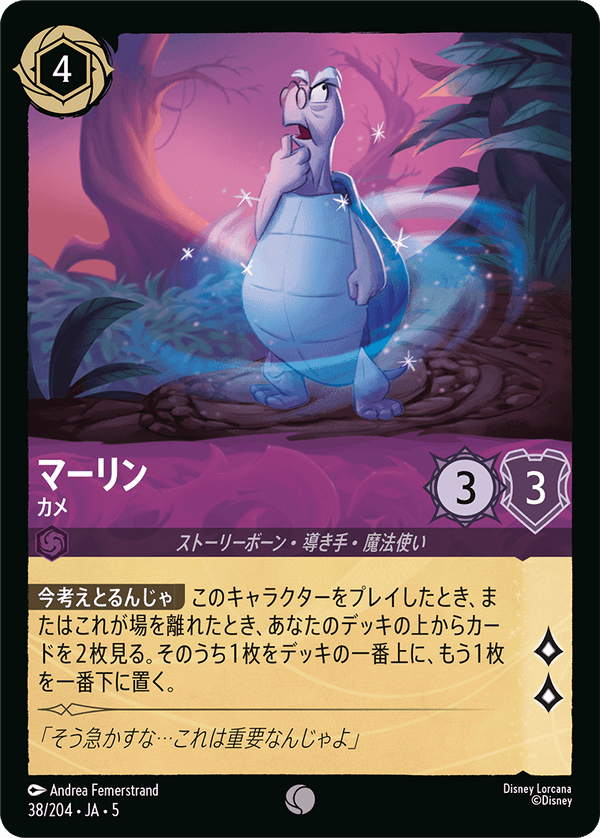今考えとるんじゃ このキャラクターをプレイしたとき、またはこれが場を離れたとき、あなたのデッキの上からカードを2枚見る。そのうち1枚をデッキの一番上に、もう1枚を一番下に置く。