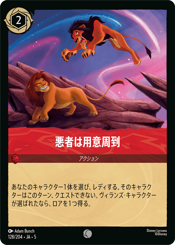 あなたのキャラクター1体を選び、レディする。そのキャラクターはこのターン、クエストできない。ヴィランズ・キャラクターが選ばれたなら、ロアを1つ得る。