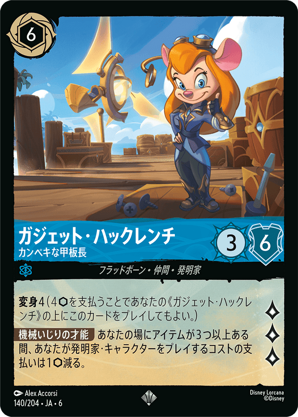 機械いじりの才能 あなたの場にアイテムが3つ以上ある間、あなたが発明家・キャラクターをプレイするコストの支払いは1減る。