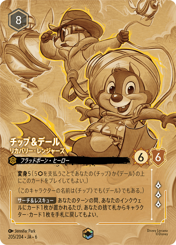 サーチ&レスキュー あなたのターンの間、あなたのインクウェルにカード1枚が置かれるたび、あなたの捨て札からキャラクター・カード1枚を手札に戻してもよい。