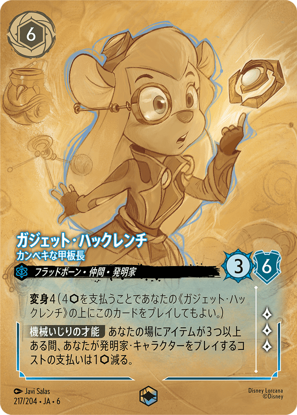 機械いじりの才能 あなたの場にアイテムが3つ以上ある間、あなたが発明家・キャラクターをプレイするコストの支払いは1減る。