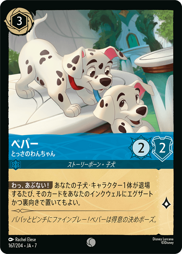 わっ、あぶない! あなたの子犬・キャラクター1体が退場するたび、そのカードをあなたのインクウェルにエグザートかつ裏向きで置いてもよい。