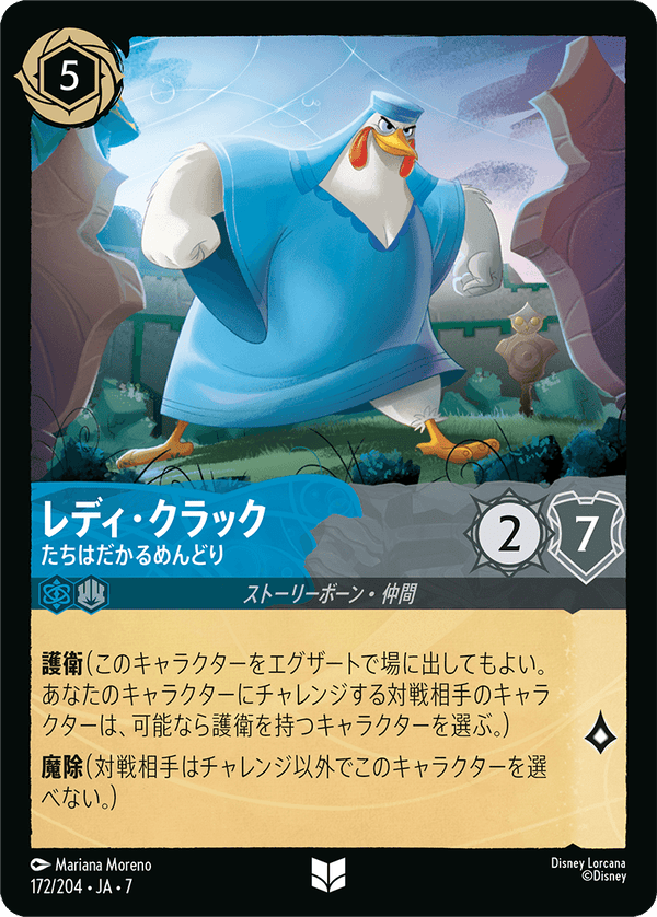 護衛(このキャラクターをエグザートで場に出してもよい。あなたのキャラクターにチャレンジする対戦相手のキャラクターは、可能なら護衛を持つキャラクターを選ぶ。)