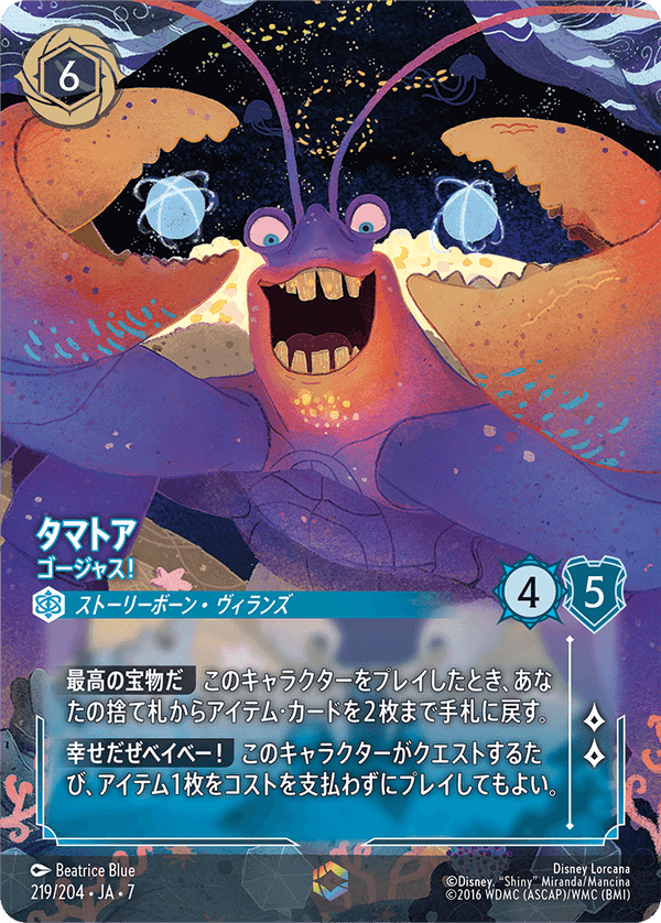 最高の宝物だ このキャラクターをプレイしたとき、あなたの捨て札からアイテム・カードを2枚まで手札に戻す。